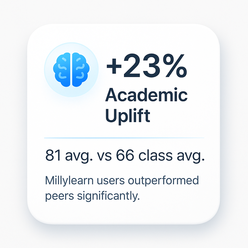 Students who used Milly scored 23% higher on their final exams compared to their peers who didn’t.